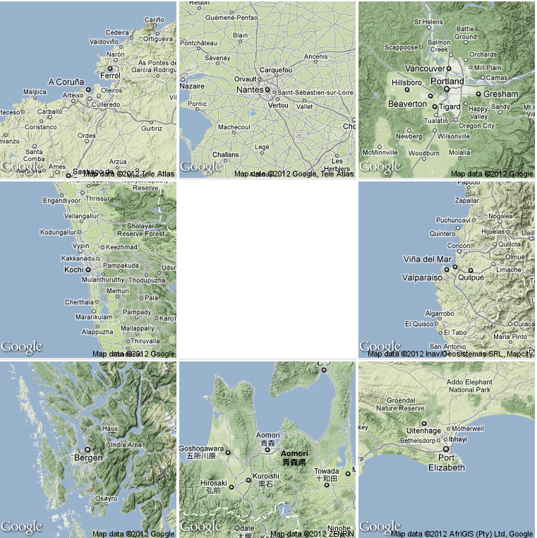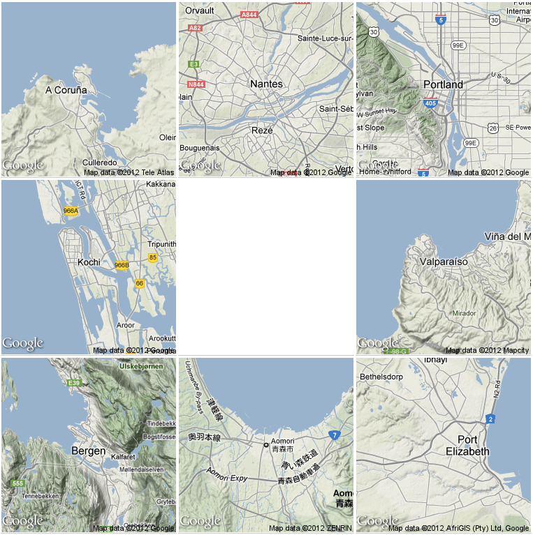 As an example, this first post includes a series of images of eight midsize metropolitan areas: my hometown (La Coruña), two more European cities, two Americans, an African and two Asians. I only have been to three of these cities, and the depth of information available is not homogeneous.