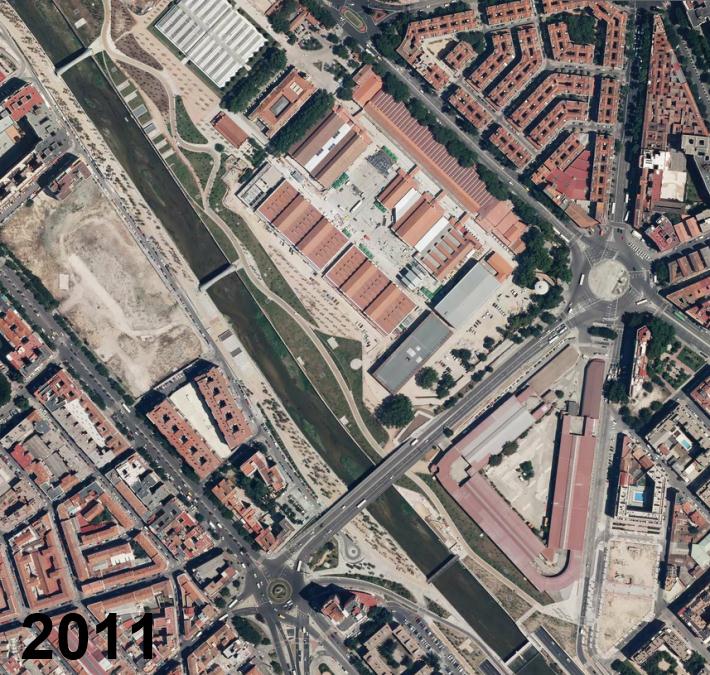 Matadero cultural center and Legazpi square are on the left. During this time the slaugtherhouse has become a new center for innovative arts.