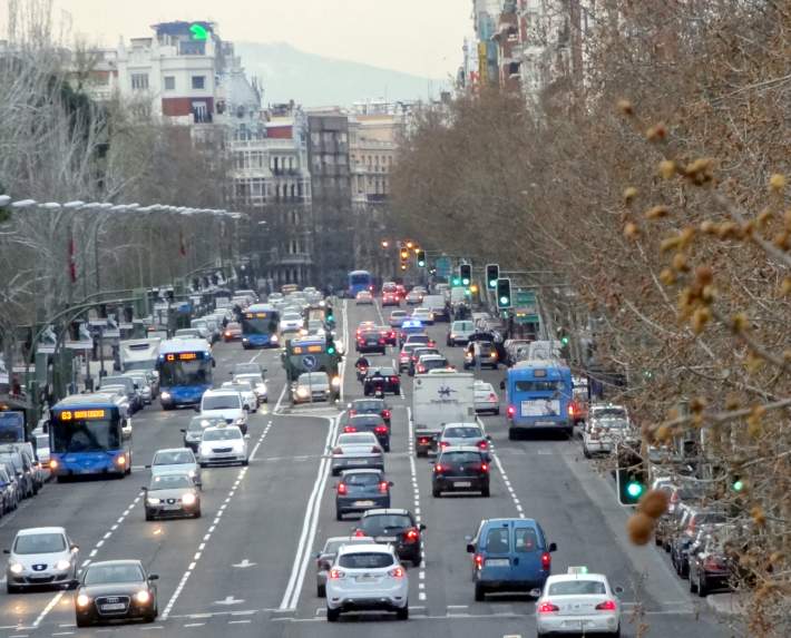 Madrid municipal statistics show that in 2010 there were 2.541.000 vehicles on the street on an average day (a bit more in june, but 25% less in august). Most of this traffic (nearly 20%) concentrates between the M30/Calle 30 Beltway and the inner avenues subject to traffic lights. The average speed is on the whole 24,16 km/h (less than half in the older part of the city, up to 67 km/h on beltways).
