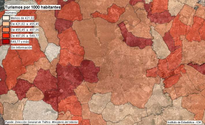 Vehicles paying local taxes in 2010 were some 1.740.000 in Madrid (some 2 citizens per car), 78% of which were cars. Using cadastral data there are 0,93 cars per housing unit as a municipal average, with lesser values in the scope of the Proyecto Madrid Centro, while in 2005 New York (but for central Manhattan) had 0,59 cars per dwelling, and París’s 2006 figure was 0,47.