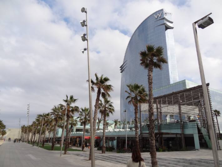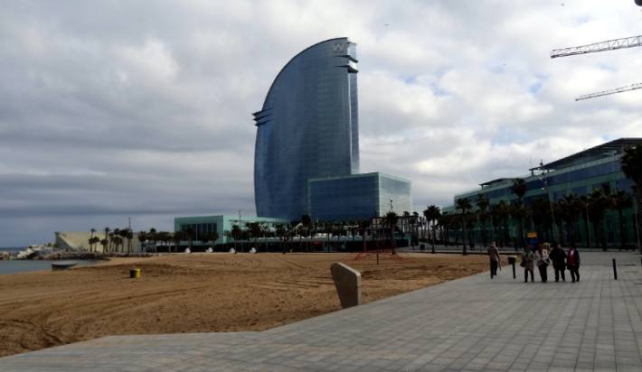 The new W hotel on the southern end of the Barceloneta beach is a new landmark. Even being quite diferent from the seashore tourist compuounds of the 1960’s, it is also a difficult to explain element in a country in which the limitations imposed to new buildings on the shore have been subject to a bitter debate, despite the growing justification given by the climatic projections regarding coastal risks.