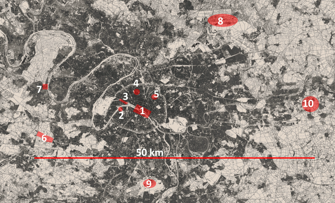 The parisian geography is that of a plains region, marked by the Seine and Marne valleys and local heights that, without representing mountain ranges, are a good set of belvederes over the area.