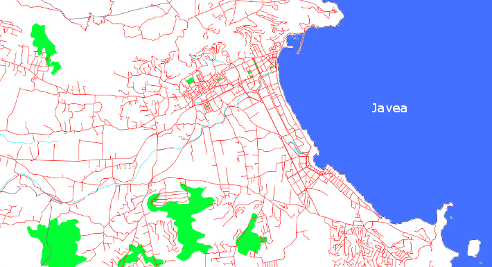 Javea shows a special situation among these examples in the Alicante coast: a seashore profile in which detached houses and low height buildings dominate. In the northern zone there is a long seaside road along which detached houses on large lots are dominant, and on the south area heights are usually five. The arrangement of the restaurant and retail areas is also based on low heigh logics, with a parking layout uncommon in the area, and there is a clear initiative to renovate and requalify the restaurant areas.
