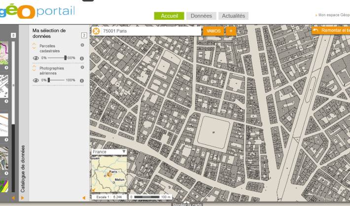 But the Geoportail brings a wonderful image of the lot structure and the buildings, without limitations due to administrative local limits