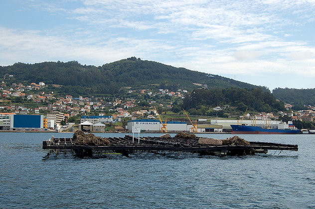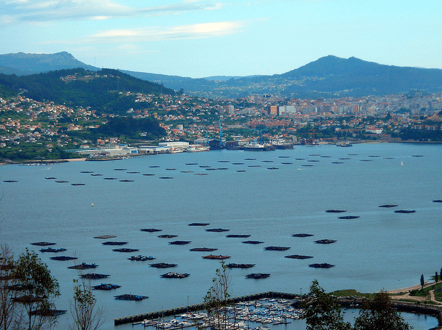 Vigo has experienced one of the most rapid growth dynamics in the last 200 years in all Spain. It has gone from a fishers village to become the core of a half a million people metropolitan area. The natuarl landscape is exceptional and impressive: arriving to Vigo from Portugal by the toll expressway allows a wonderful view of the bay, protected to the west by the Cies Islands. The combination of water, green hills and a quite caothic urban landscape in some parts is an aesthetical impact. And on the sea, the bateas, rafts for mussel growing that create a curious pattern on aerial images…