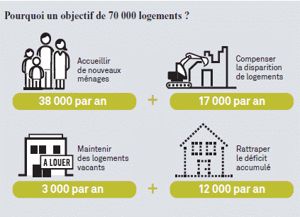 Overall, this building effort will compensate a regular decline in the housing production since the begining of the 1990s. It should allow to develop the offer of housing for students, old people, handicapped people, young workers, people in social risk, and nomads. Social housing would be developped to adress the current deficit.