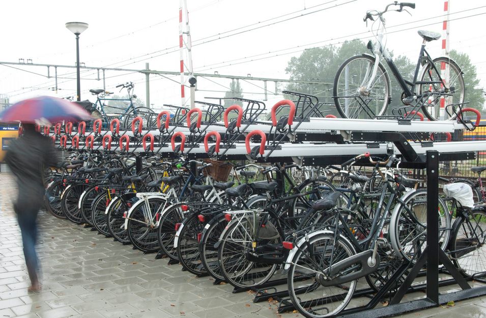 27% of all travel in the Netherlands are by bike (according to Pucher & Buehler, 2008), the highest ratio in the world. The average Dutch pedals 2,5 km daily (Spaniards just 0,1, as well as in the US…).