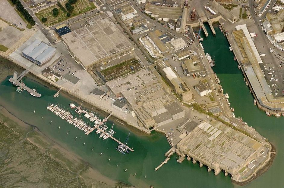 The base is built by the estuary, out of the city. WWI had seen submarines, but their role was more relevant during WWII. The base is configured as an array of individual hangars for each submarine, forming concrete pods whose walls and roofs had thicknesses measurable in meters, in two parallel rows, with rails in the center to move submarines towards the lock connecting the system to the sea. Like in a modern parking, with individual slots for each ship… but for the fact that a submarine is anything but “automobile” out of the water. The system was substituted on the next stage by individual “pods” for each submarine at sea level, so each ship could get in and out easily.