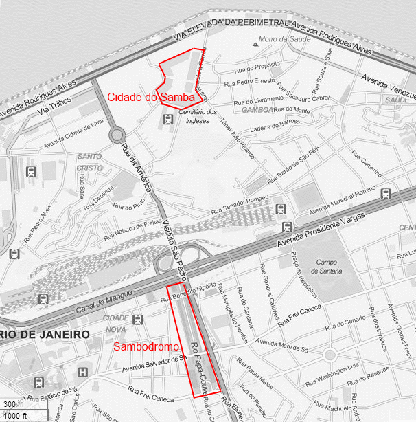 Leila María da Silva Blass describes in her article “Rompendo as Fronteiras: a cidade do Samba no Río de Janeiro”, published in 2008 in the Revista Brasileira de Ciencias Sociais, a space where the big paraphernalia of the Escolas de Samba is built. It is a kind of industrial compound to produce ephemeral elements, but also a kind of theme park (tourism cruises stop nearby).
