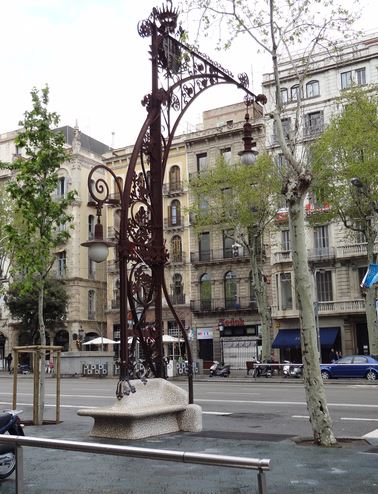 The Paseo de Gracia is not just a choice location to see Gaudi Works in Barcelona, as it is also one of the first streets in the Ensanche; in fact, its layout has a slight angle when compared with the general grid, which follows the straight line of the Gran Vía, defined by distant points. It is a boulevard with a central main way, lateral planted alleys and side service traffic alleys.