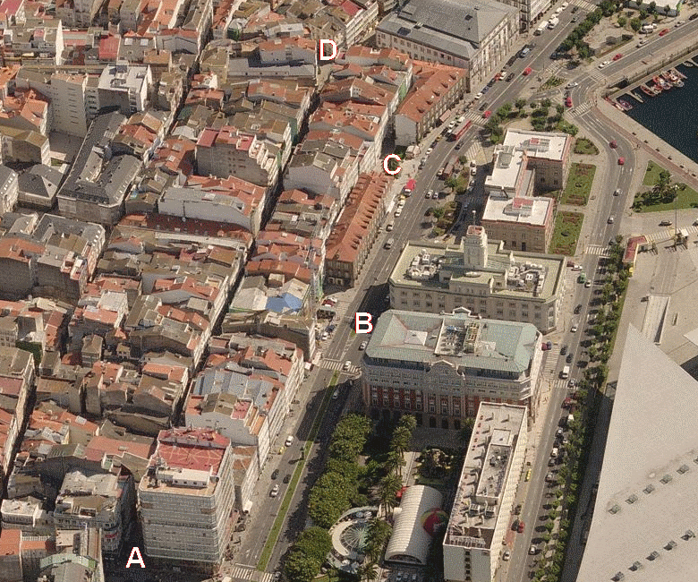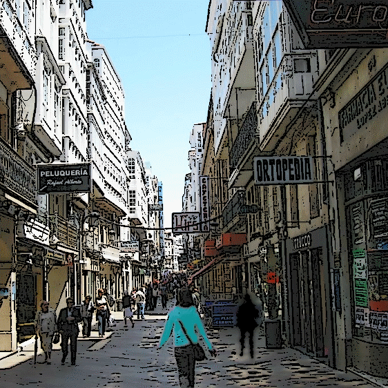 Real street in La Coruña (Galicia, Spain) is one of the most relevant in the historical core. Some 300 m long and 7 m wide, it was historically an inner road as related to the seashore, today at a greater distance due to landfill. The urban patter is relatively regular, although not homogeneous in geometrical termes: the axis of the street is not entirely straight, but the end can be seen from the beginning.