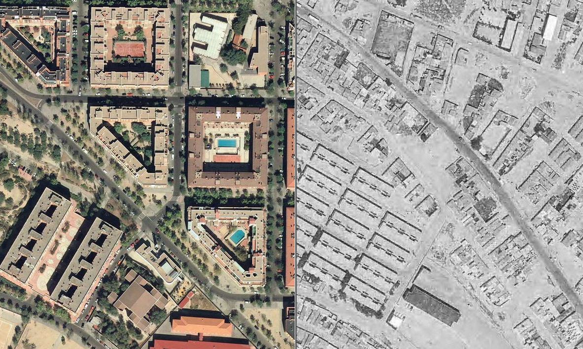 This was a clearly illegal settlement, not like Puente de Vallecas, that appeared in a moment with almost no planning regulations. Here there was already a legal solution for the problem, but economic growth had to attain a certain level to allow the transfromation of the area with a substantial public investment (and also by private agents).