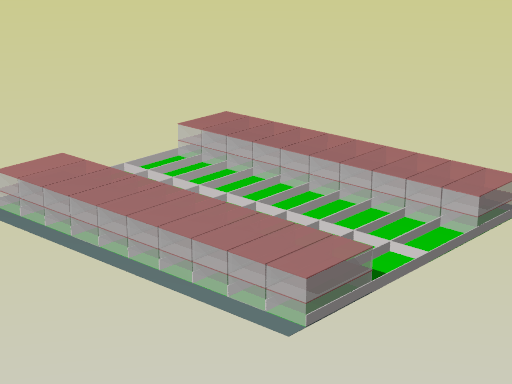 If half that surface is put on top of the other half, gardens appear. Still 20 homes with 150 sq m of built-up area, but much better as there can be windows…