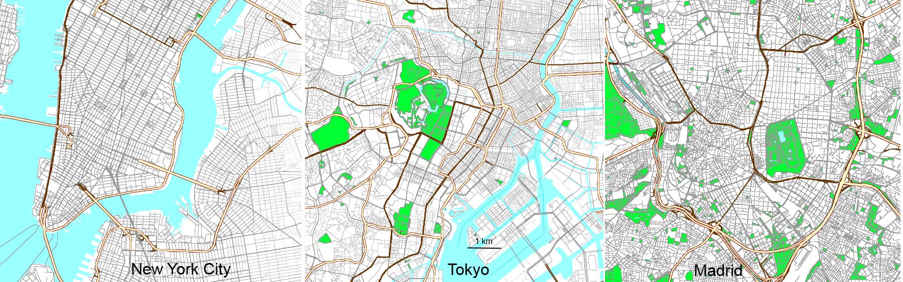 Tokyo’s core is marked by the bay, which is becoming more difficult to see as it is being filled for new urban uses, by the mouths of several rivers, the presence of the Imperial Palace and a motorway system that is much more apparent and ramified than in European or even American cities.