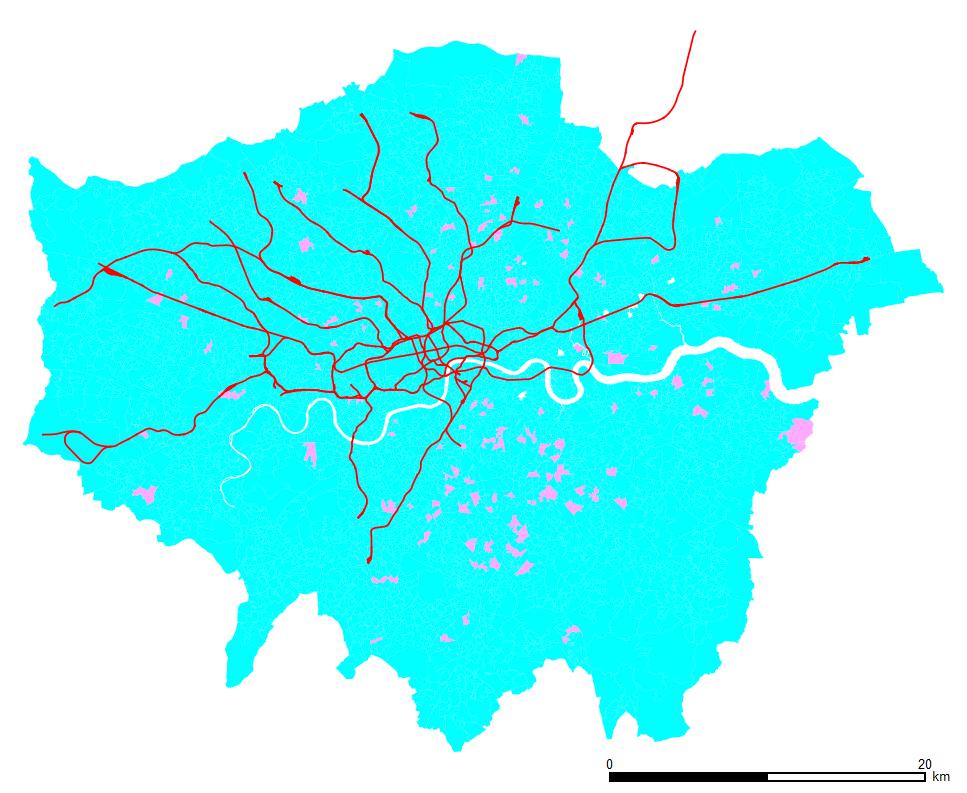 The interesting thing is how these jobs are geographically distributed by gender. As yesterday, red lines are the tube.