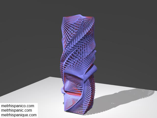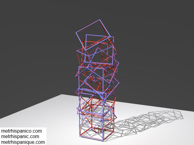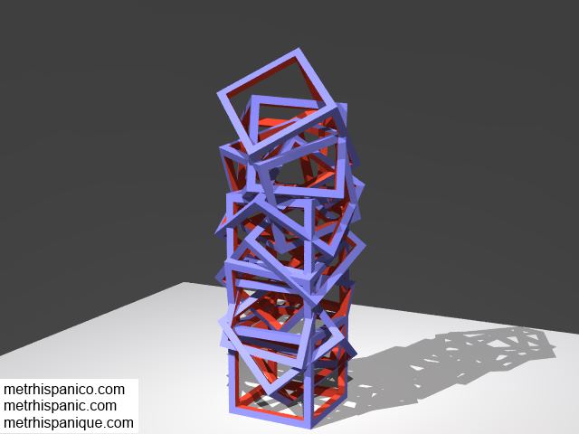 Lets keep playing with the cube. Now with increasingly open cubes, that this time turn around themselves in the three axis while they go up, so we have a vertical column.
