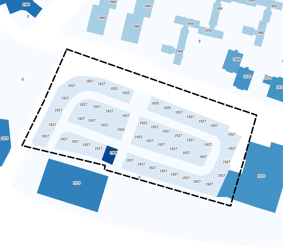 Building year or last overall refurbishment year for each lot. Here, a nearly total homogeneity