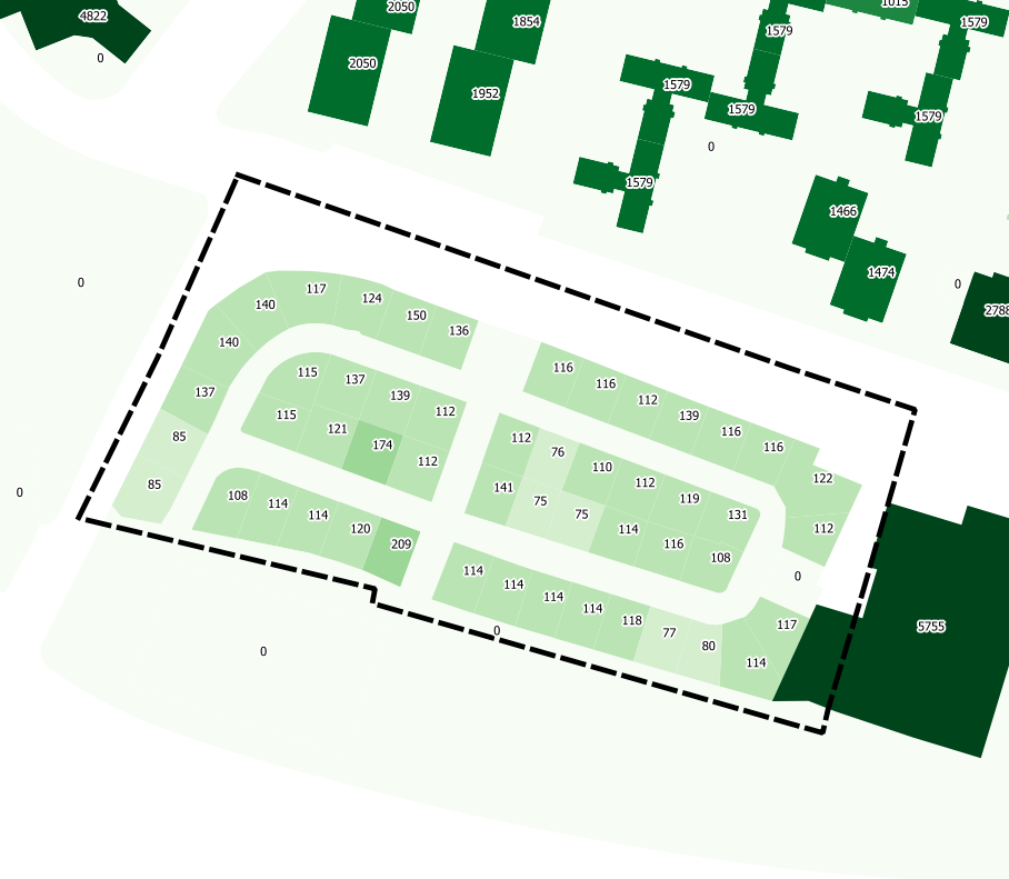 Lot areas are different, but on a coherent range. A rather oddity in Madrid, the inner street is private.