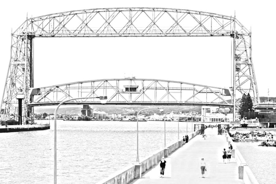 When ports are on busy circulation corridors, the need for bridges appears, and so that for complex solutions. In Duluth the Aerial Lift Bridge is one of the city icons. It was built to grant access to the Minnesota Point peninsula after the opening of a navigation channel through its base. The first years it was a transporter bridge, to be later transformed in the current car bridge with a vertical motion platform that adapts to the air draft of passing ships. Besides, as in many ports in this area of the great lakes, where iron ore is one of the most common bulk freights, the contraptions that allow the transfer of the load from trains to ships are simply impressive (something that can be well perceived on this video about a different port in Michigan http://www.youtube.com/watch?v=rzWwTOt39Es&list=PL7eOOJxsVrlgY0de0Osk7DTF8l2r9ksOb&feature=share&index=3). Such wharfs can only be seen (but not in active) in zones of Spain like Huelva or Almería.