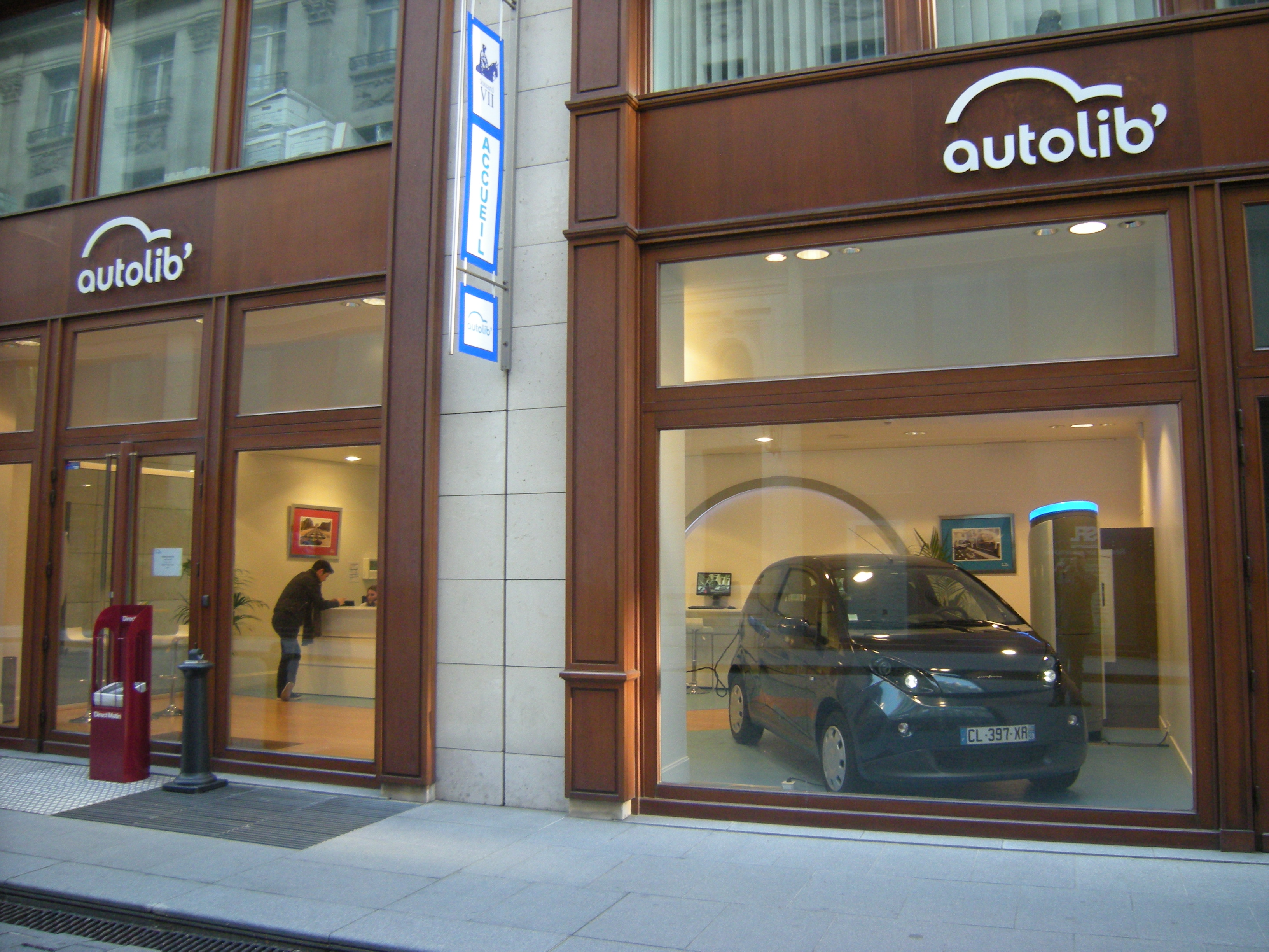 The image is that of yet one more car dealership. But it is something else. After having developed a bike location scheme (velib), the City of Paris has begun a pioneer project: electric car renting. The idea has some attractive elements: for many Paris residents car ownership is not so practical, but rather a chore, having to pay high parking prices and car maintenance for something you finally use just some days. A number of parking spots on the streets have been reserved for this system, in which you take your car at one station and can leave it at any other in the network. Besides, the high initial cost of acquiring an electric car is balanced, favouring a technological evolution that reduces greenhouse gas emissions.