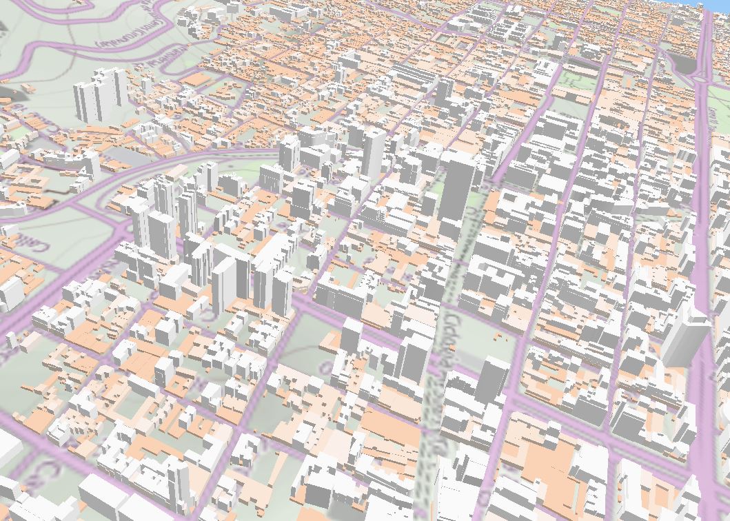 I’m clearly used to read maps and deduce such things as differences in building heights from a planar view. But sometimes it is clearly better to see what this means in a 3D view. According to cadastral data, this is how central Bogota (Colombia) looks like in terms of built bulk. The background map is…