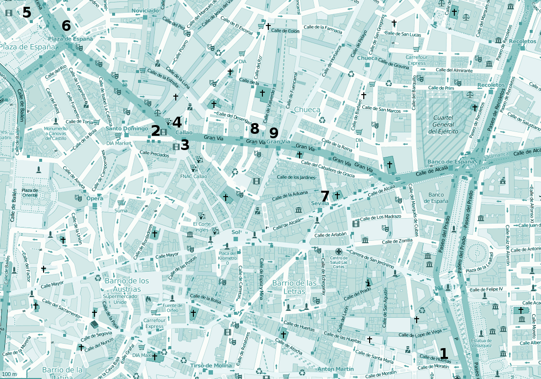 You might as well think I’m getting on holidays… but that’s not just the case. Until autumn I will focus on different things, and I hope you will find time for some rest. And just a little contest for that time. The upper snap was taken in Madrid this morning, from a point inside city limits that can be accessed by anyone (at least during opening hours…). Whoever gets to locate the precise spot will receive a special gift when I start again a regular posting season in autumn. Under these lines you have a clue…