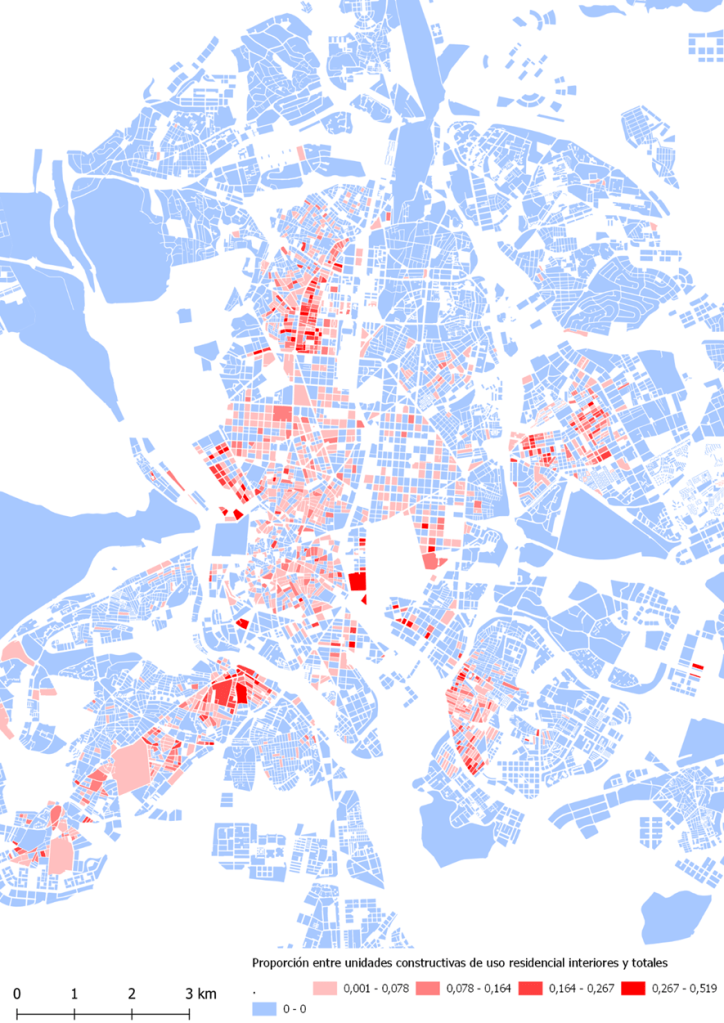 Table 1. Properties in the municipality of Madrid based on the presence of interior and exterior residential construction units. Prepared by the author according to cadastral data.