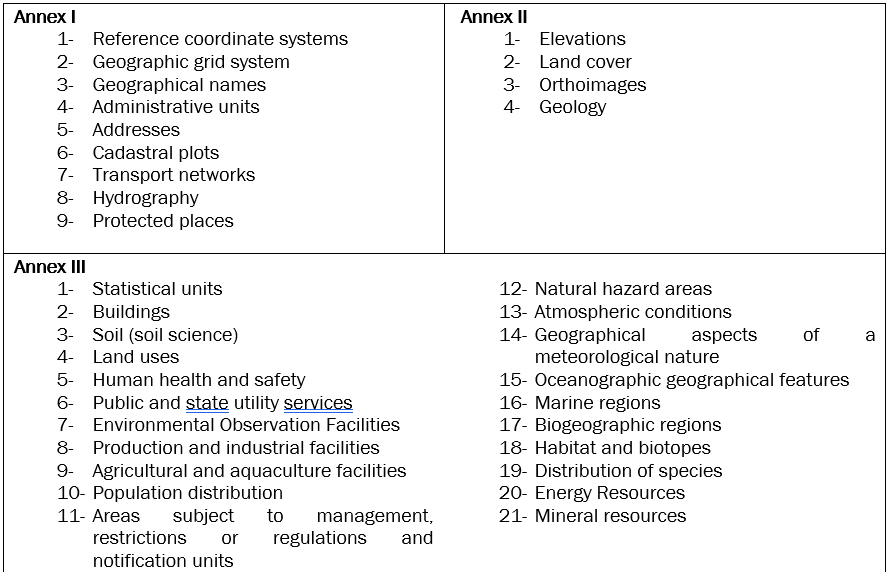 In the general context of the European Union, Directive 2003/98/EC of 17 November 2003 of the European Parliament and of the Council on the re-use of public sector information provides a framework for the development of the concept of open data. In the specific aspect of spatial information, which is particularly relevant for territorial and urban planning, Directive 2007/2/EC of the European Parliament and of the Council, known as INSPIRE (Infrastructure for Spatial Information in Europe), has generated a very useful reference framework. A set of priority topics for publication related to the environment (air, nature, water, noise, waste, industrial emissions and industrial accidents) has been defined and a list of thematic contents, relevant for the preparation of territorial and urban planning, has been grouped into three annexes.